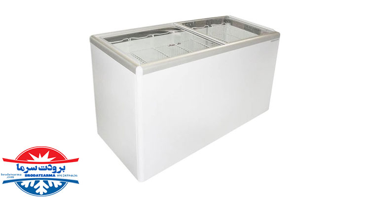 صنایع برودتی برودت سرما با ۲۵ سال سابقه تولید کننده با کیفیت ترین و بهترین فریزرهای صندوقی مناسب برای استفاده در سوپرمارکت ها،هایپرمارکت ها وفروشگاه های بزرگ زنجیره ای می باشد به طور کلی یکی از مهم ترین و اصلی ترین تجهیزات و نیاز های یک فروشگاه فریزرهای صندوقی با درب های شیشه ایی کشویی است که قابلیت رویت محصولات درون فریزر را به مشتریان گرامی برای انتخاب راحت تر می دهد بدنه دستگاه عایق بندی شده توسط دستگاه تزریق اتوماتیک گاز پلی یورتان است که باعث جلوگیری از هدر رفتن انرژی درون دستگاه به بیرون می شود بدنه دستگاه از جنس ورق گالوانیزه می باشد که با توجه به نیاز و سفارش مشتریان عزیز می توانیم از استیکرهای مختلف بر روی آن استفاده کنیم در زیر دستگاه چرخ هایی قرار داده شده است که جا به جایی راحت تری داشته باشد همچنین این محصول دارای ۱۸ ماه گارانتی و ۵ سال خدمات پس از فروش است که این امکان را به مشتری می دهد تا با ارامش خاطر بیشتری خرید خود را انجام دهد